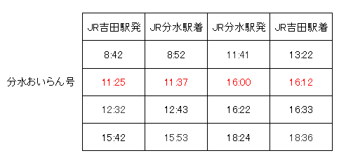 JR分水駅に発着列車時刻表