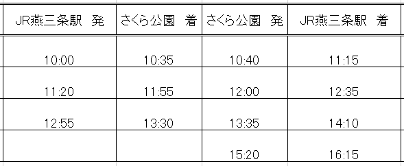 ・シャトルバス経路2 運行表 JR燕三条駅 ⇔ 大河津分水さくら公園