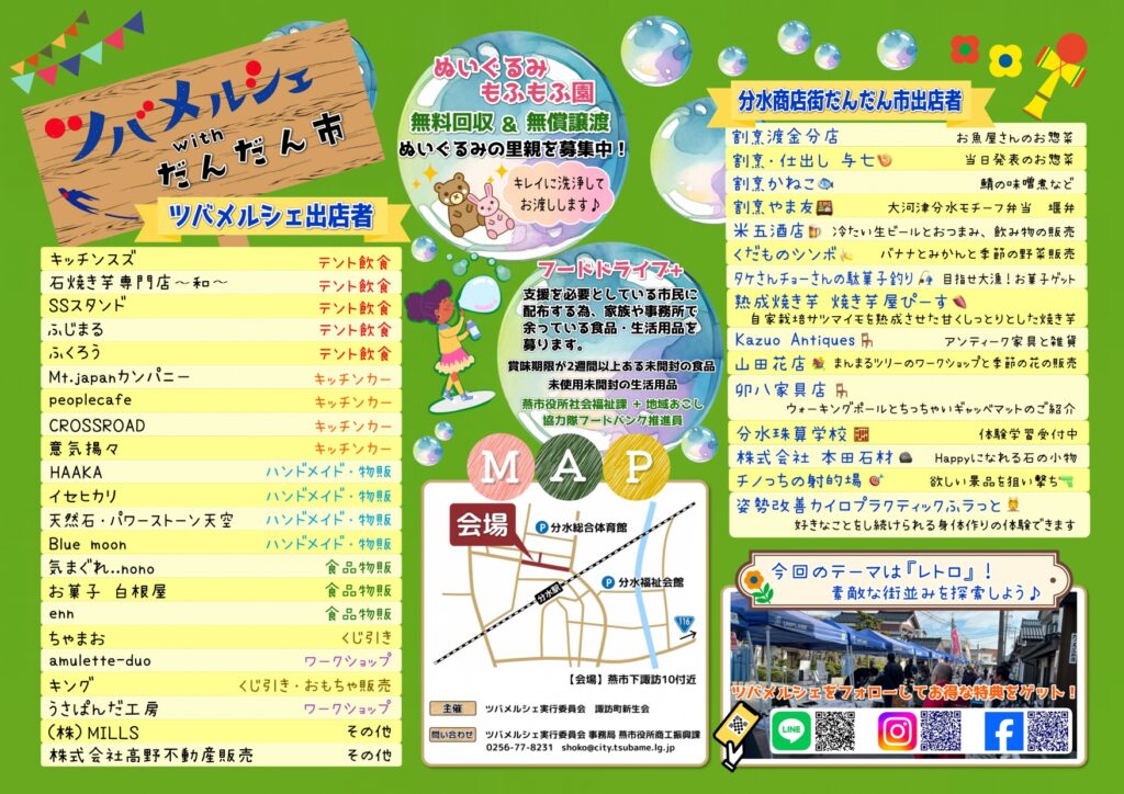 今年の「ツバメルシェwithだんだん市」も分水諏訪町商店街にて開催されます!