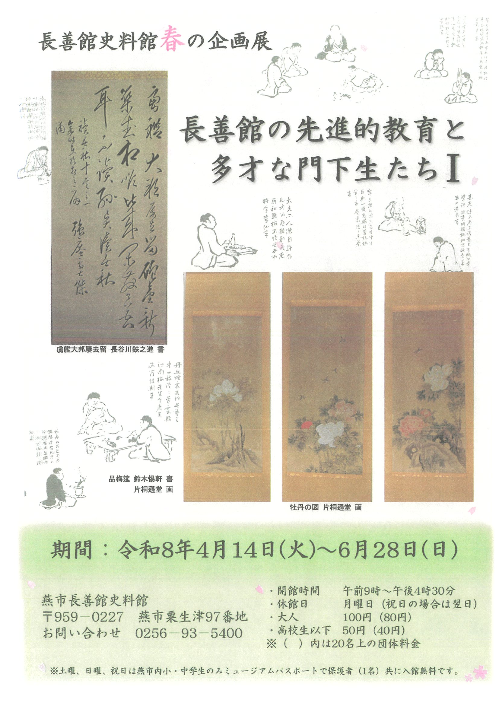 歴代館主や長谷川鉄之進、片桐遜堂など門下生たちの春らしい作品が展示されます。
