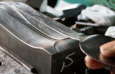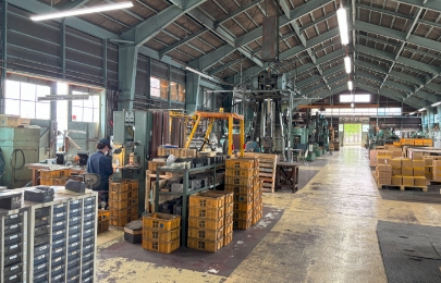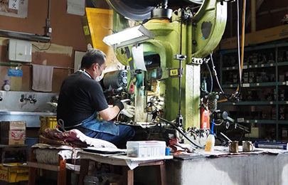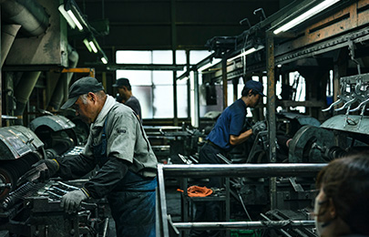 金属洋食器の一貫生産工場、近代的な工場で少人数に対応